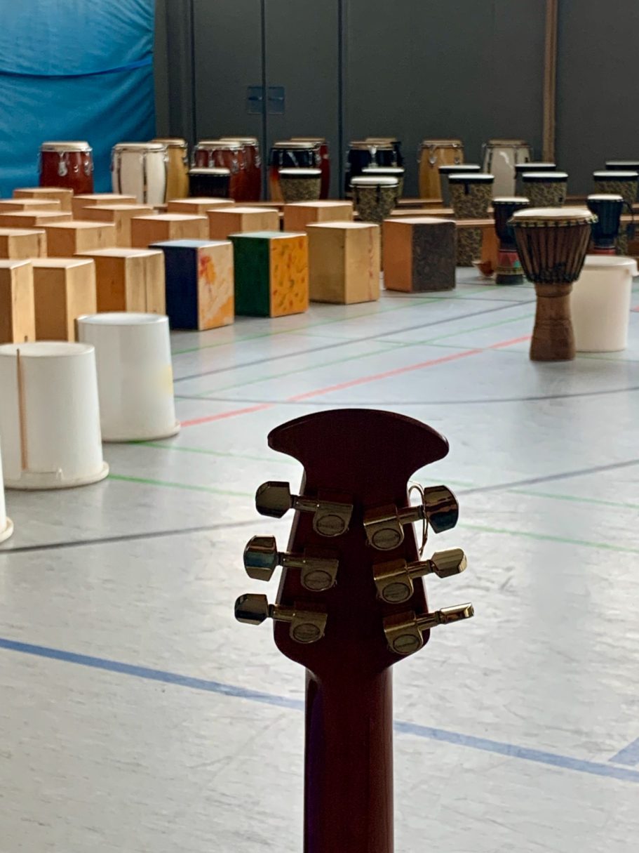 Auch die Entstehung einer zugehörigen Performance soll Bestandteil der Projektwoche und des Songs sein. Das können Tanzschritte, Bewegungen oder ähnliches sein. Den musikalischen Teil übernehmen die Kinder, es wird getrommelt und musiziert. In verschiedenen Workshops wie Musik & Choreographie, Rhythmus & Bewegung oder Wort & Text wird nach und nach ein komplexer Schulsong entstehen. Wie sich der Song am Ende nun anhören wird, was immer wir mit Euch gemeinsam erarbeitet haben.... Eins ist sicher : Am Ende steht der Song für Eure Schule. Euer eigener Schulsong, der fertig gemischt, gemastert und auf Wunsch über die gängigen Streamingportale veröffentlicht, auf jeden Fall aber in Euren Klassenzimmern und zuhause immer wieder angehört werden kann. Des weiteren bekommt die Schule den Text, die Noten und die Akkorde des Liedes, damit er ab jetzt und immer wieder gemeinsam gesungen und weitergetragen werden kann. Dazu gibt es noch eine Playback Version, zum abspielen und zum singen.