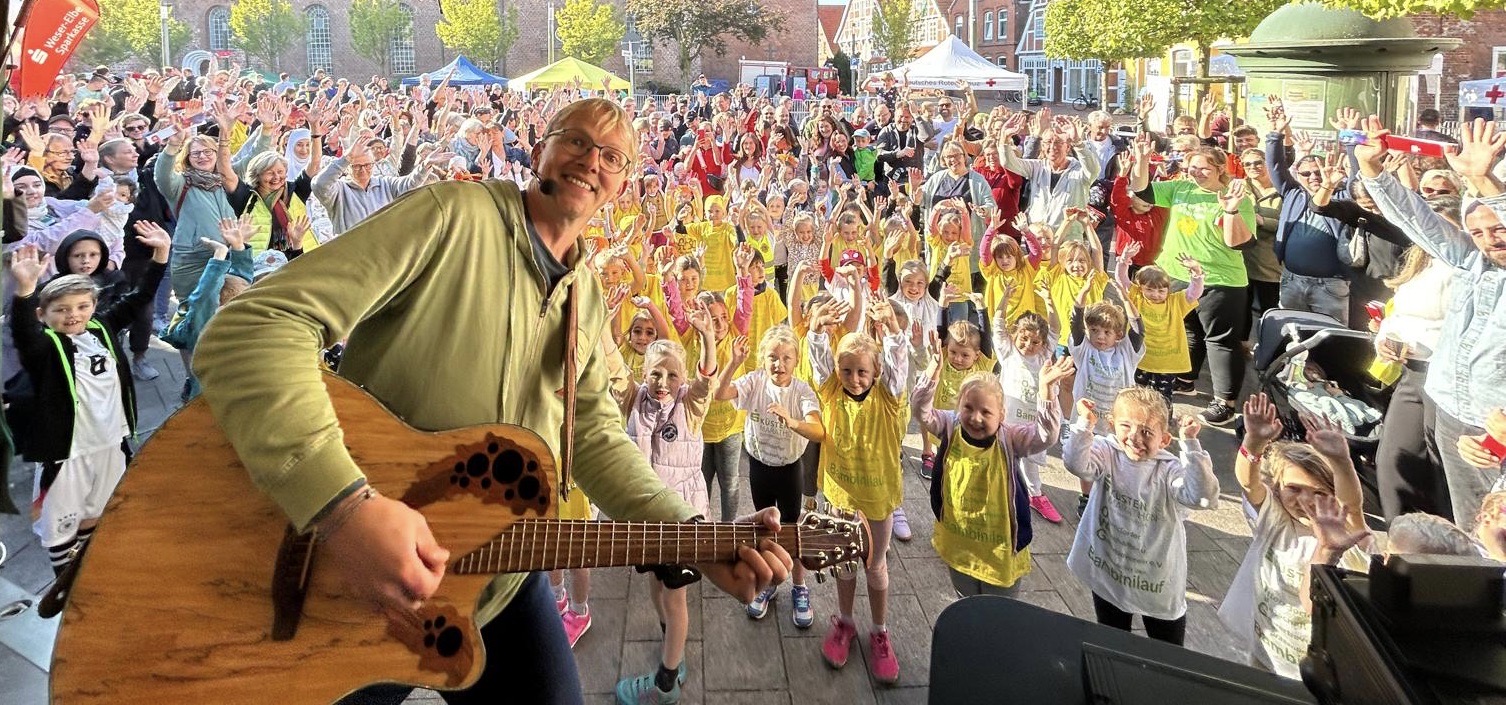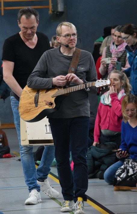 Mit Gitarre, Cajon, Percussion und Gesang präsentieren wir Euch Lieder aus der Feder von Florian Müller, in denen sich es in erster Linie um Themen wie Zusammenleben, Demokratie, Gemeinschaft und Kinderrechte dreht. Darüber hinaus spielen wir weitere Lieder von aktuellen Kinderliedermachern, die auf die Zielgruppe Grundschule ausgerichtet sind.